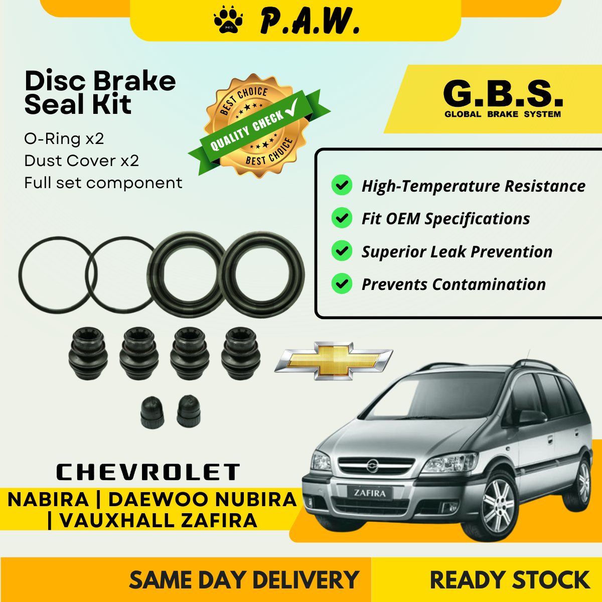 GBS Disc Brake Seal Kit For CHEVROLET NABIRA,DAEWOO NUBIRA,VAUHALL ZAFIRA (Front) (Full Set)