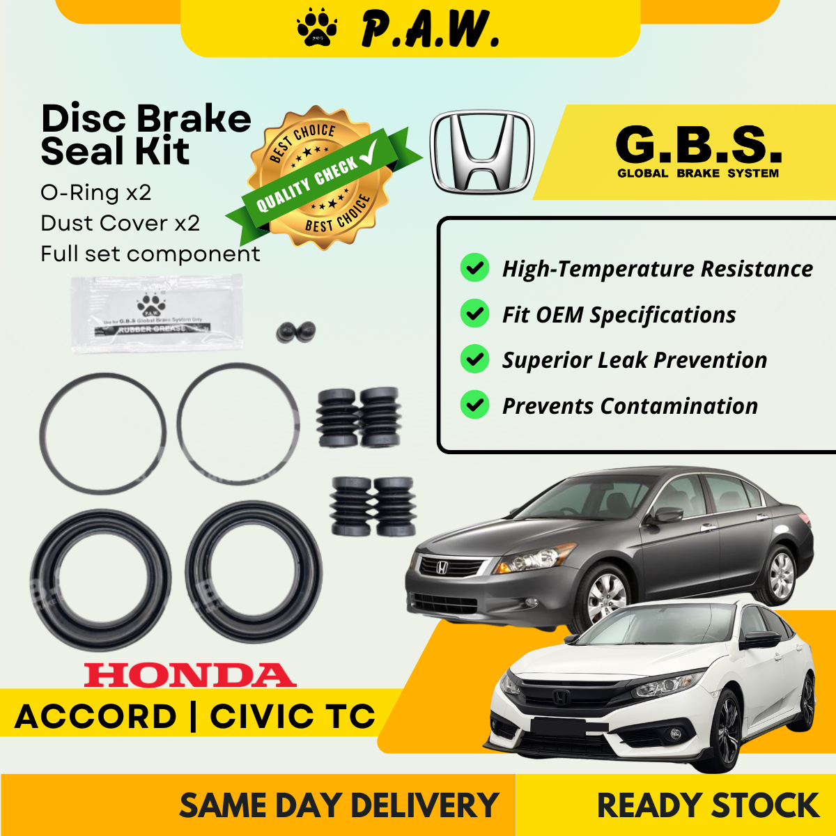 GBS Disc Brake Seal Kit For Honda Accord SV4 / SM4 / TAO, Civic TC (58mm) (Front) (Full Set)