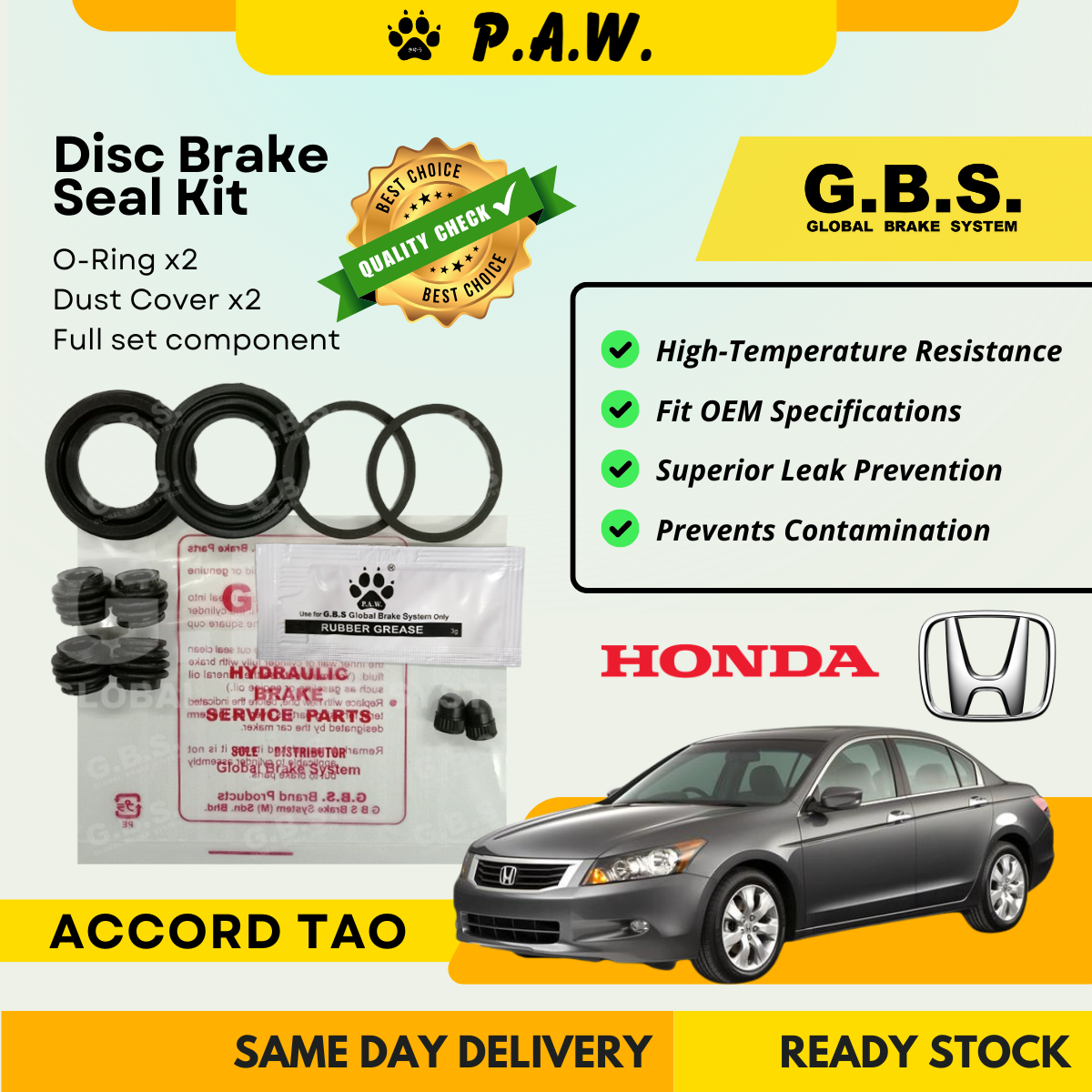 GBS Disc Brake Seal Kit For HONDA ACCORD TAO (Rear) (Full Set)