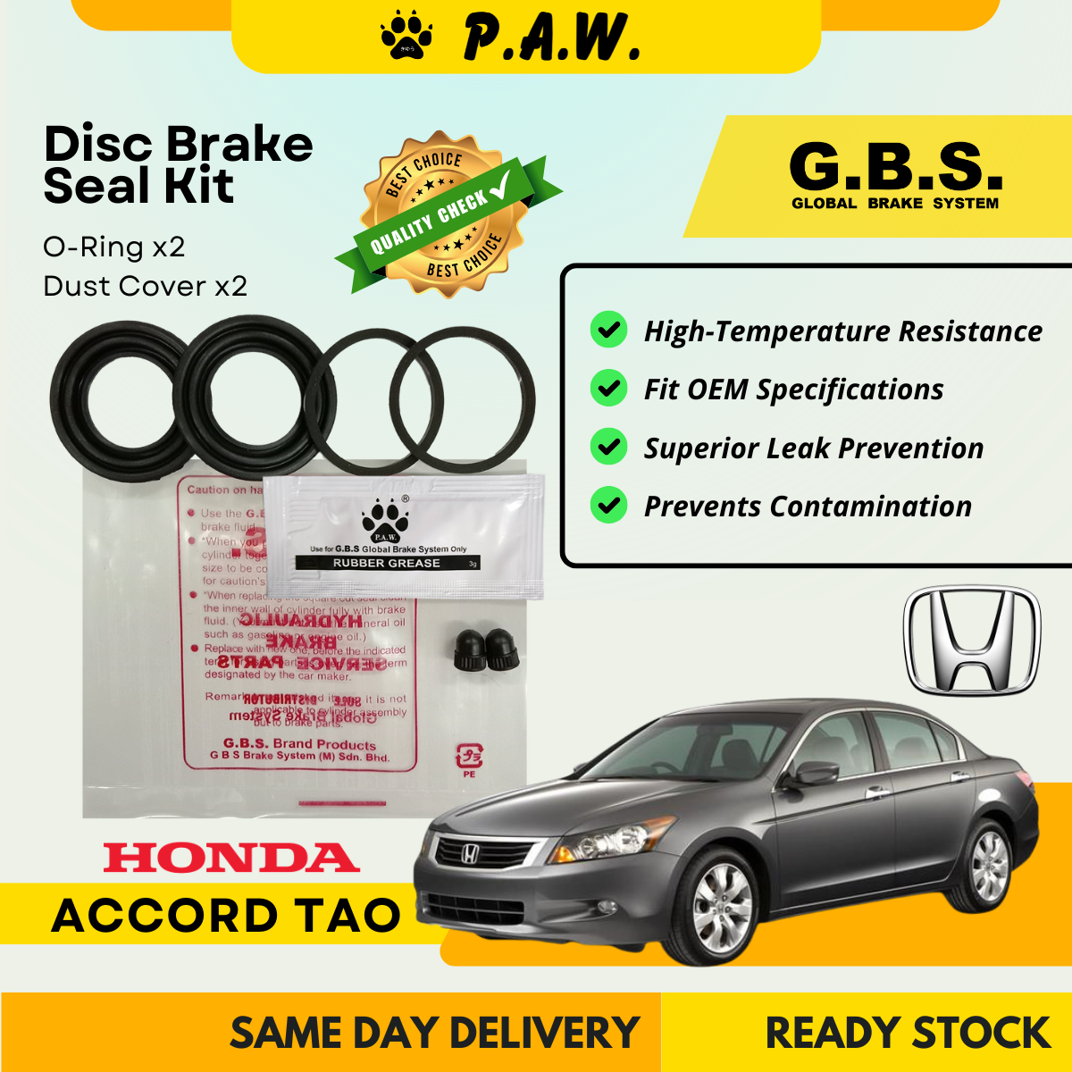 GBS Disc Brake Seal Kit For HONDA ACCORD TAO (Rear) (Half Set)