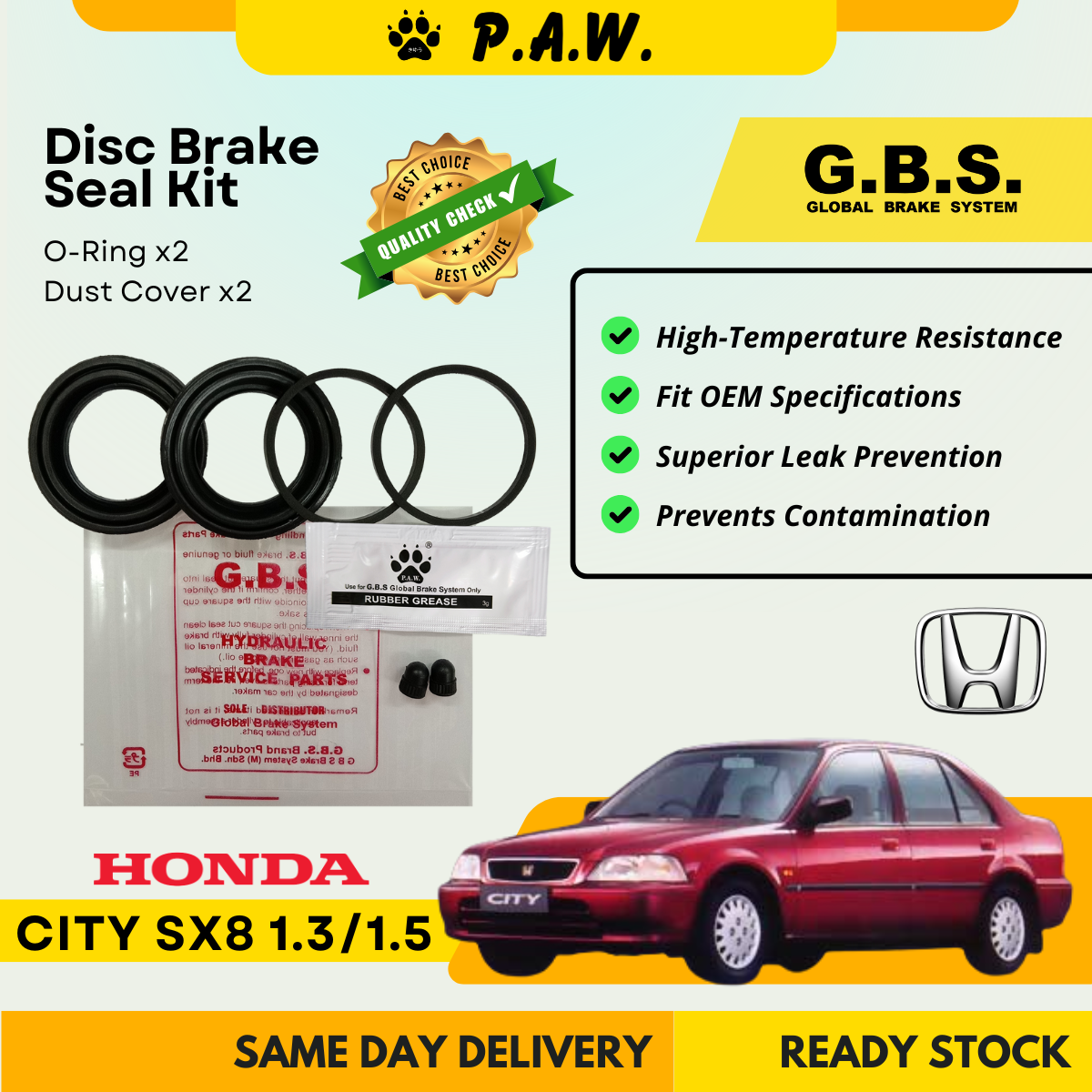 GBS Disc Brake Seal Kit For HONDA CITY SX8 1.3 1.5 (Front) (Half Set)