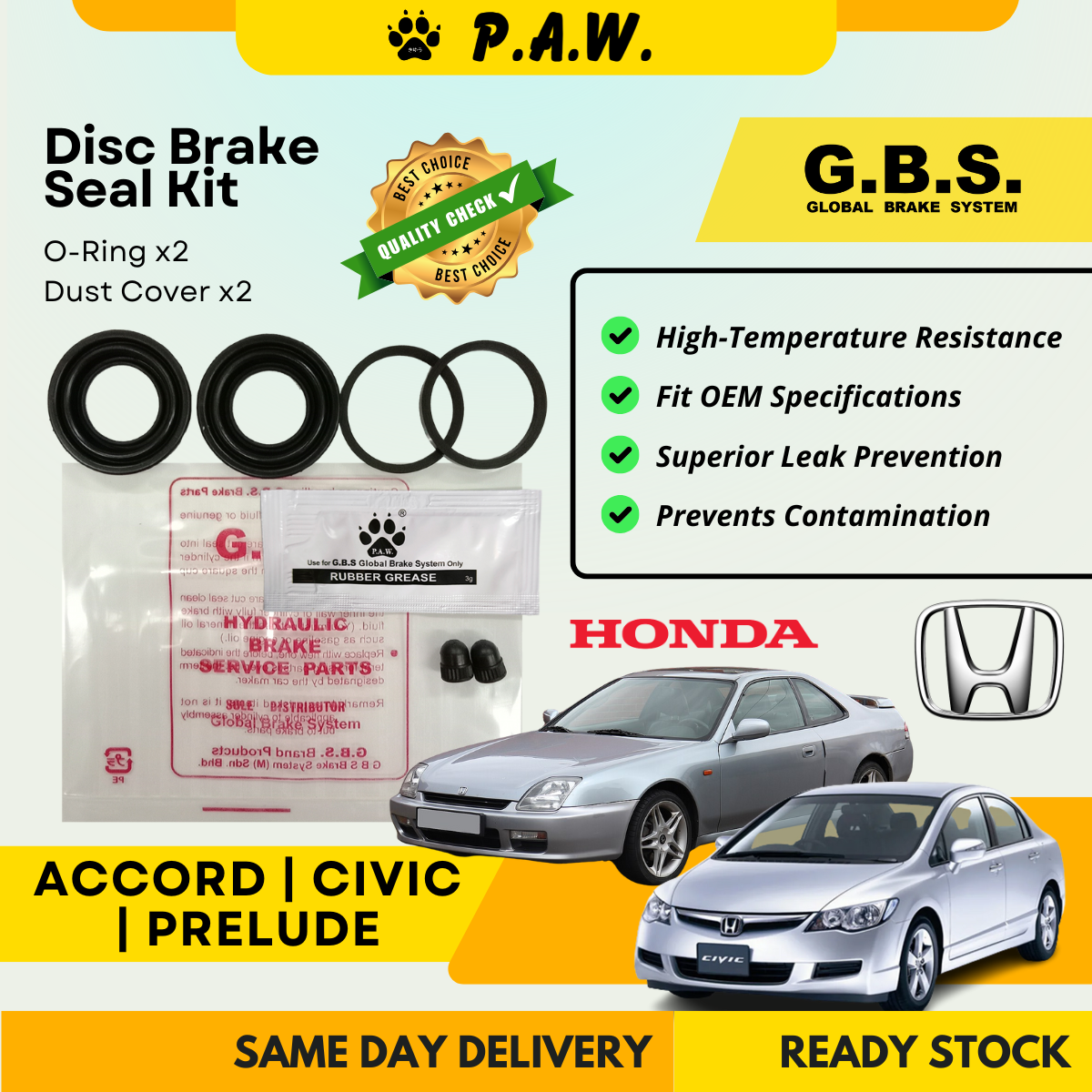 GBS Disc Brake Seal Kit For Honda Civic EP/ET/FD/Type R, Accord SV4/SDA, Prelude BB (Rear)(Half Set)