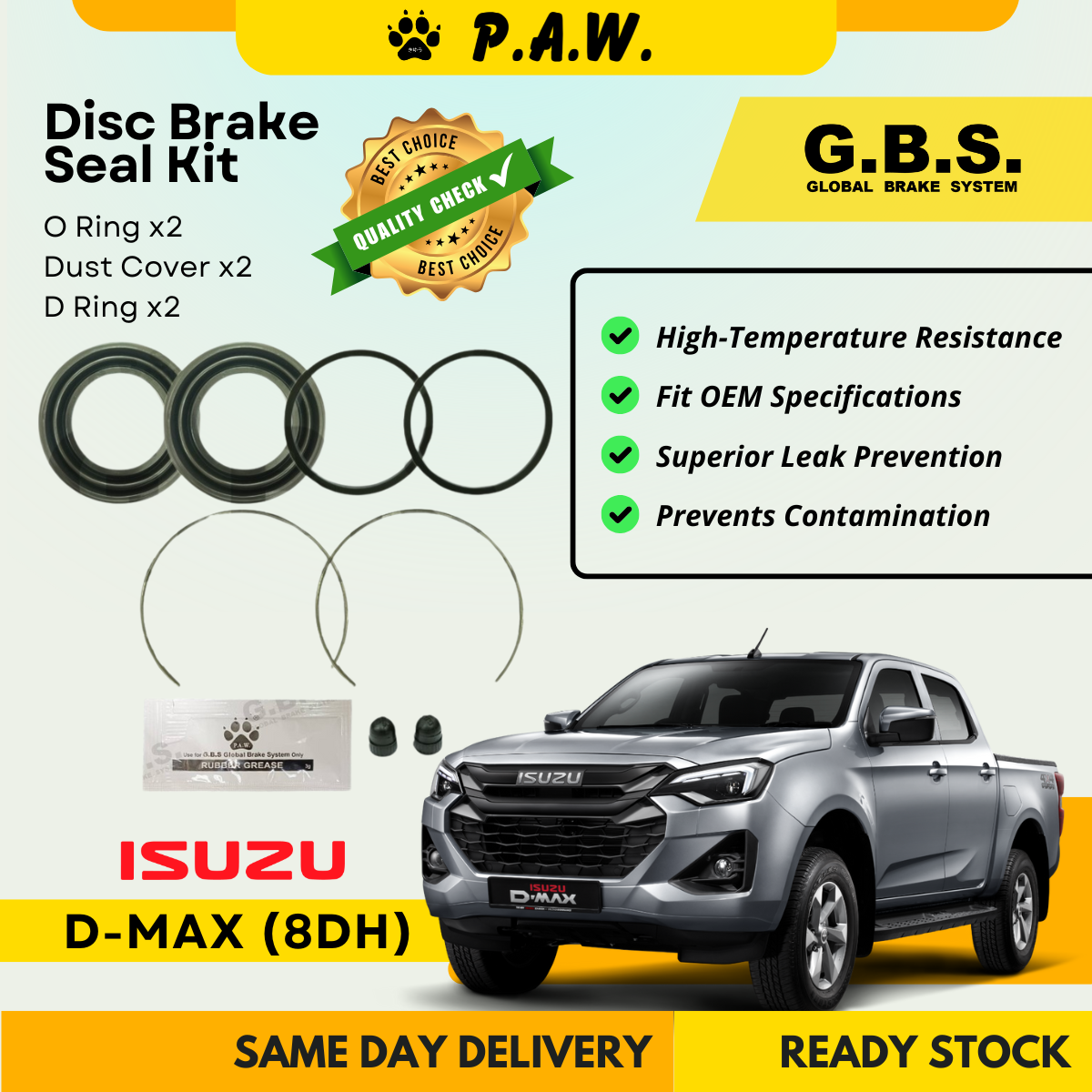 GBS Disc Brake Seal Kit For ISUZU D-MAX (8DH) (Front) (Half Set)