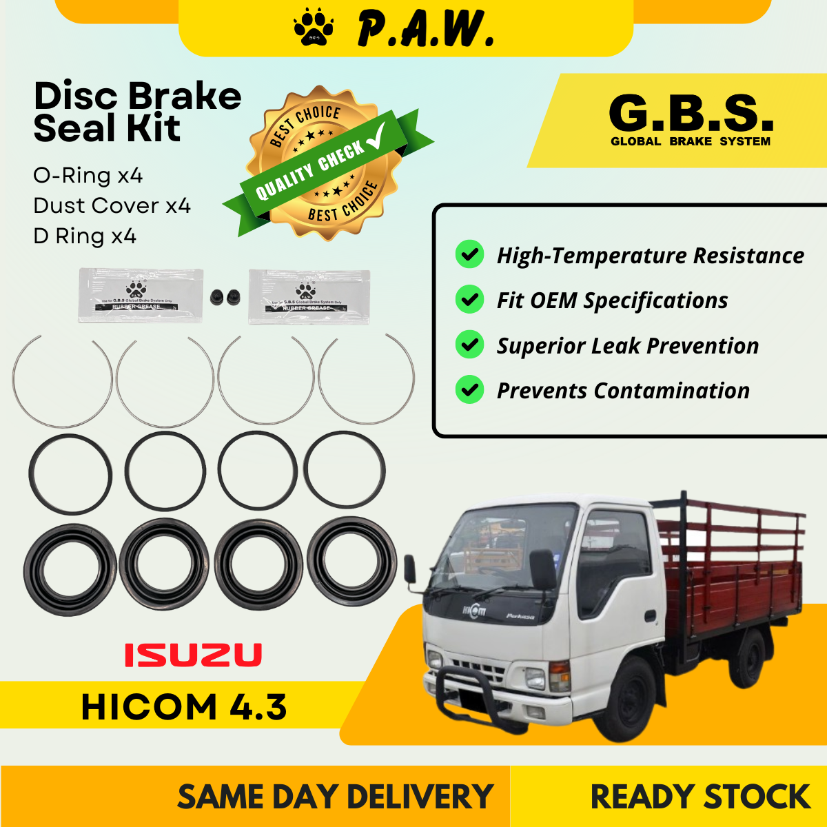 GBS Disc Brake Seal Kit For ISUZU HICOM 4.3 (Front) (Half Set)