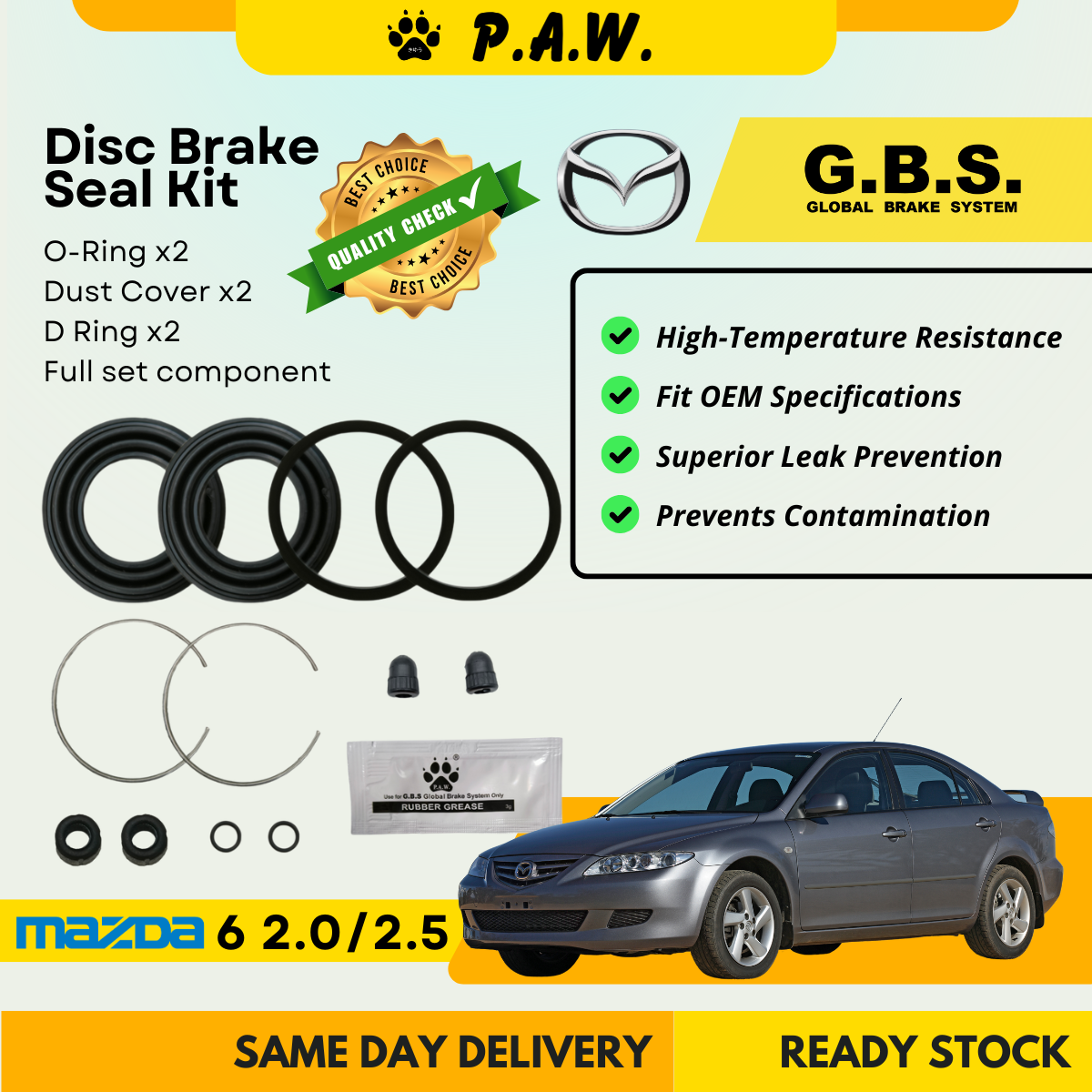 GBS Disc Brake Seal Kit for MAZDA 6 2.0/2.5 GH1 GH2 (Rear) (Half Set)