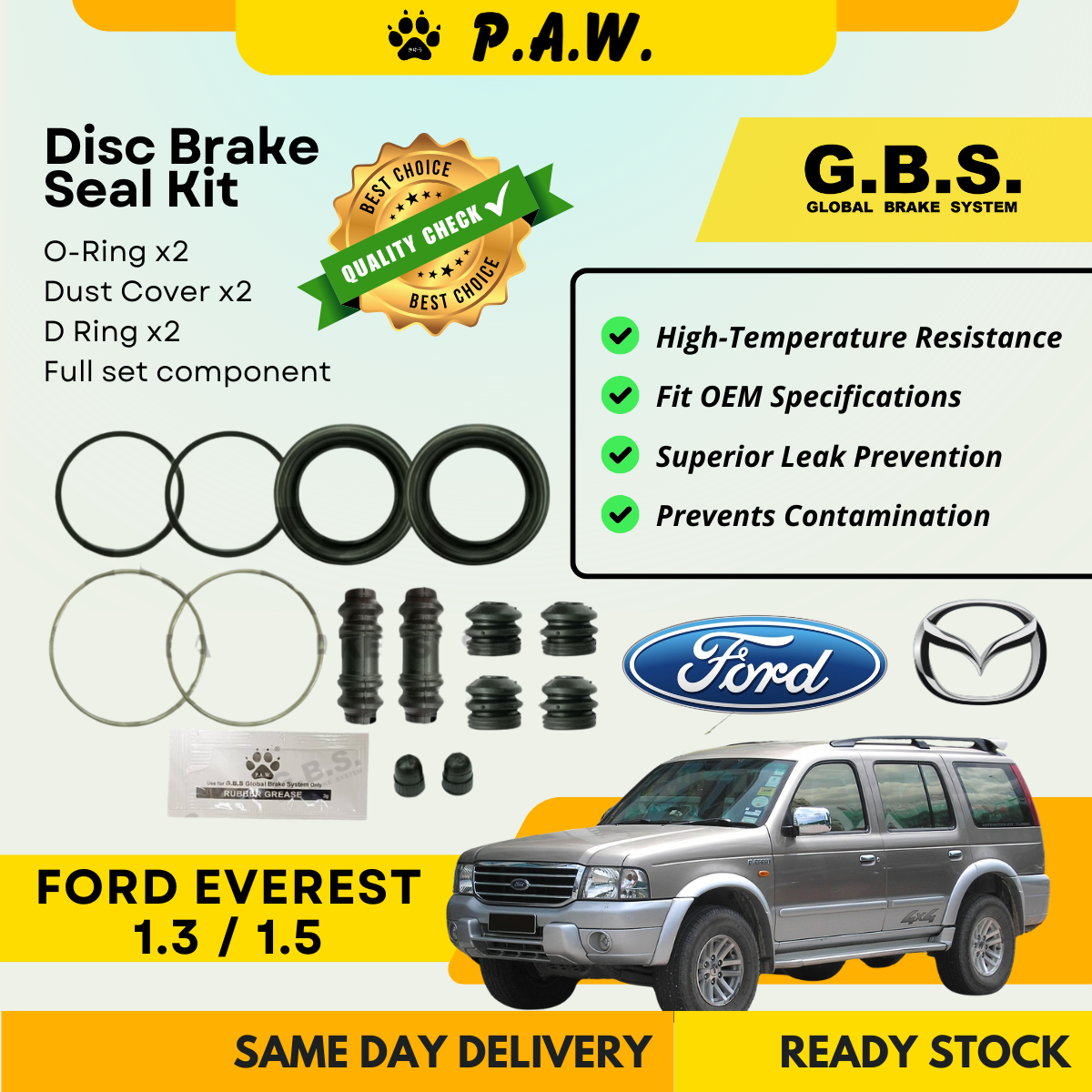 GBS Disc Brake Seal Kit For MAZDA FORD EVEREST DW DW3W DW5W 1.3 1.5 (Front) (Full Set)