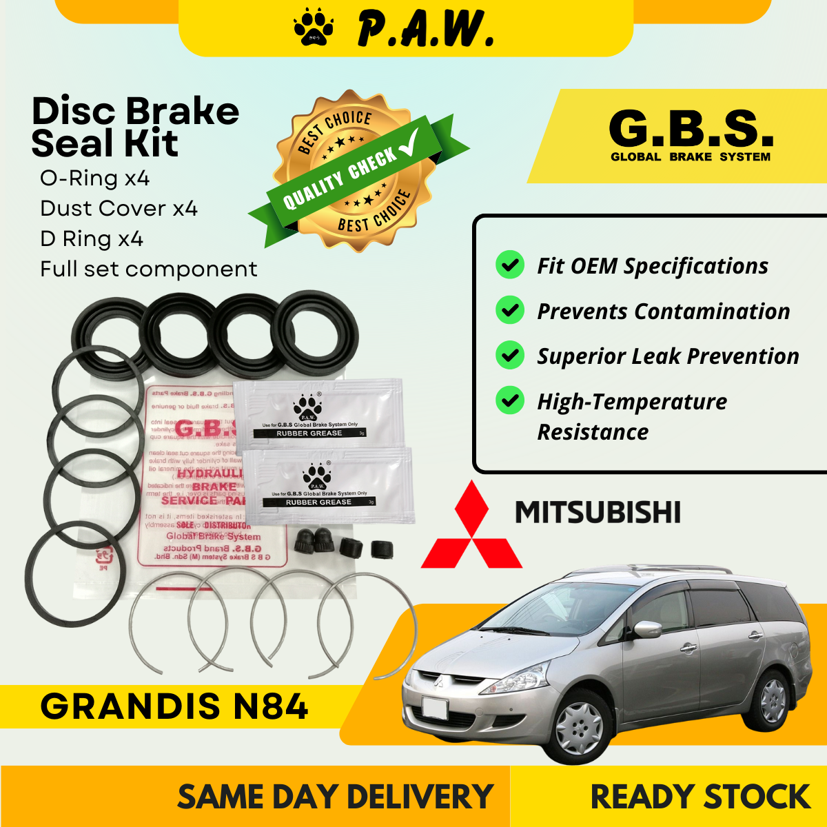 GBS Disc Brake Seal Kit For MITSUBISHI GRANDIS N84 (Front) (Full Set)