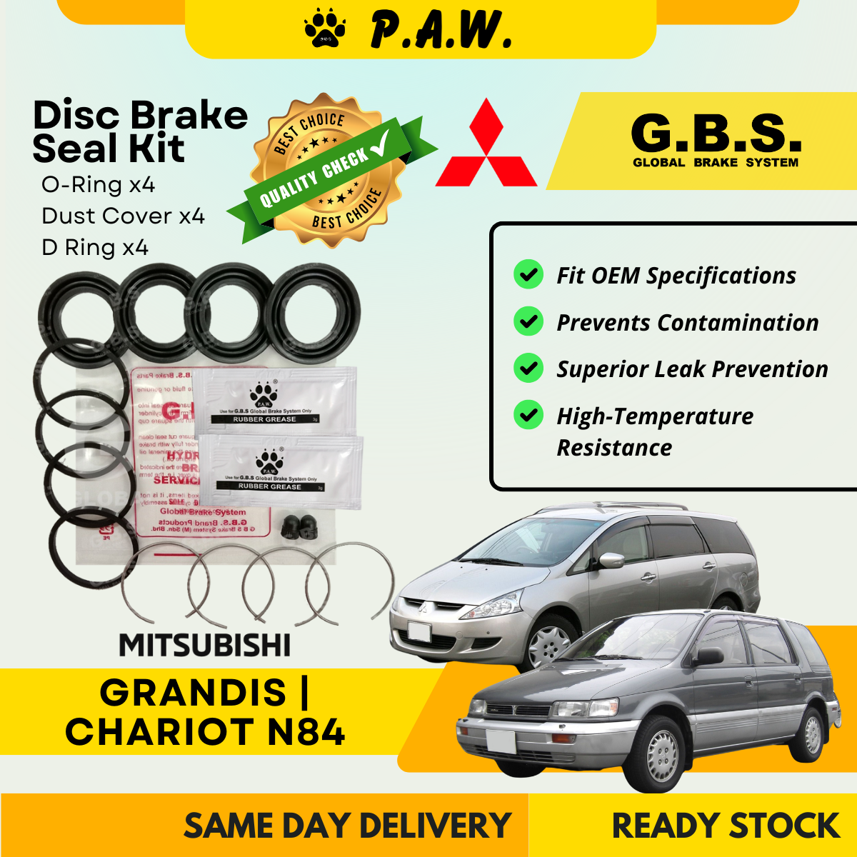 GBS Disc Brake Seal Kit For MITSUBISHI GRANDIS N84 (Front) (Half Set)