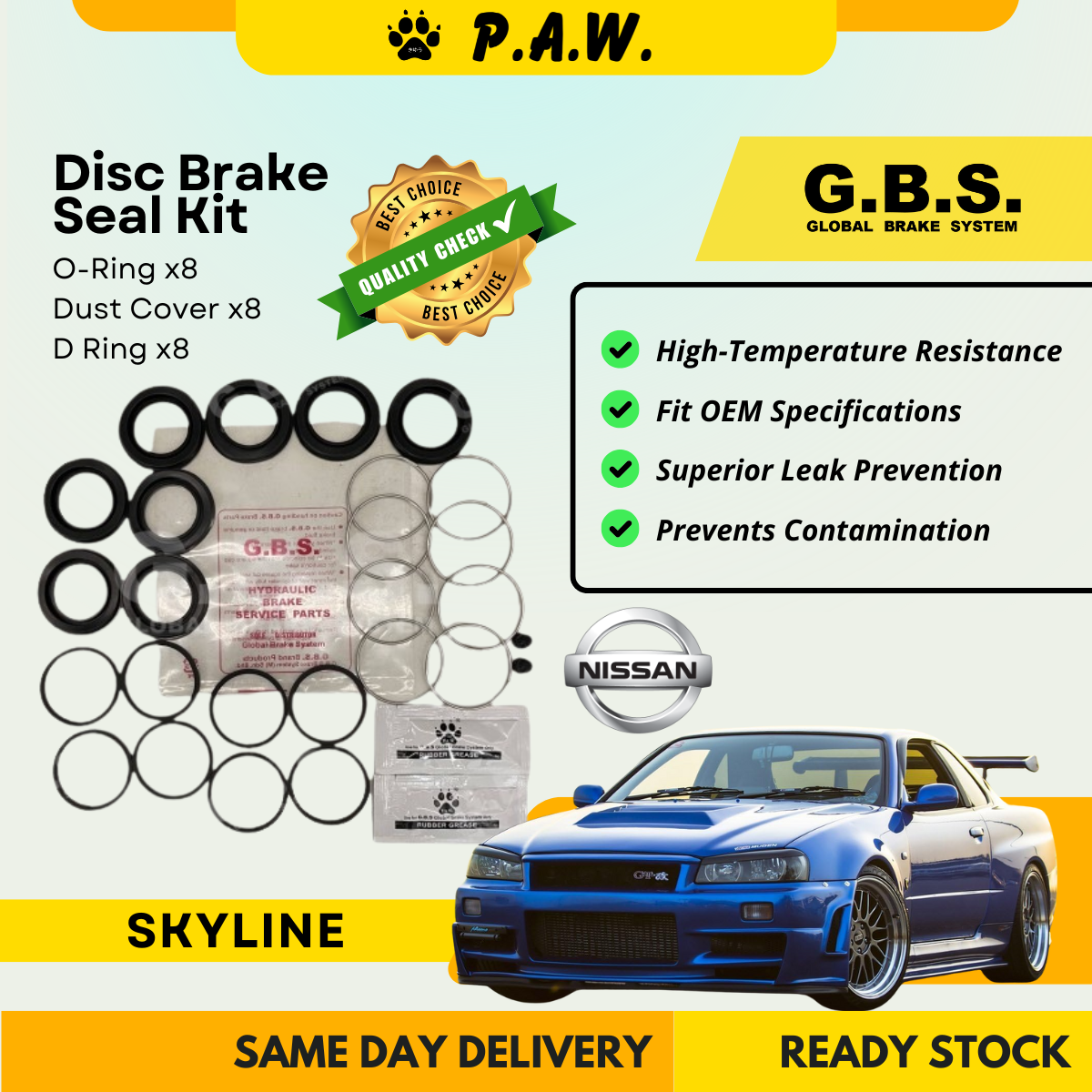 GBS Disc Brake Seal Kit For NISSAN 350Z Z33 Track,SKYLINE GTR R32, R33, R34,V35 (Front)(Half Set)