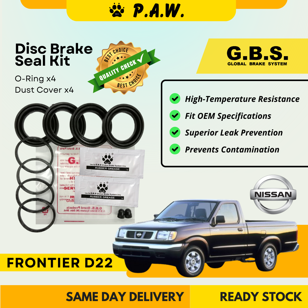 GBS Disc Brake Seal Kit For NISSAN FRONTIER D22 (Front) (Half Set)