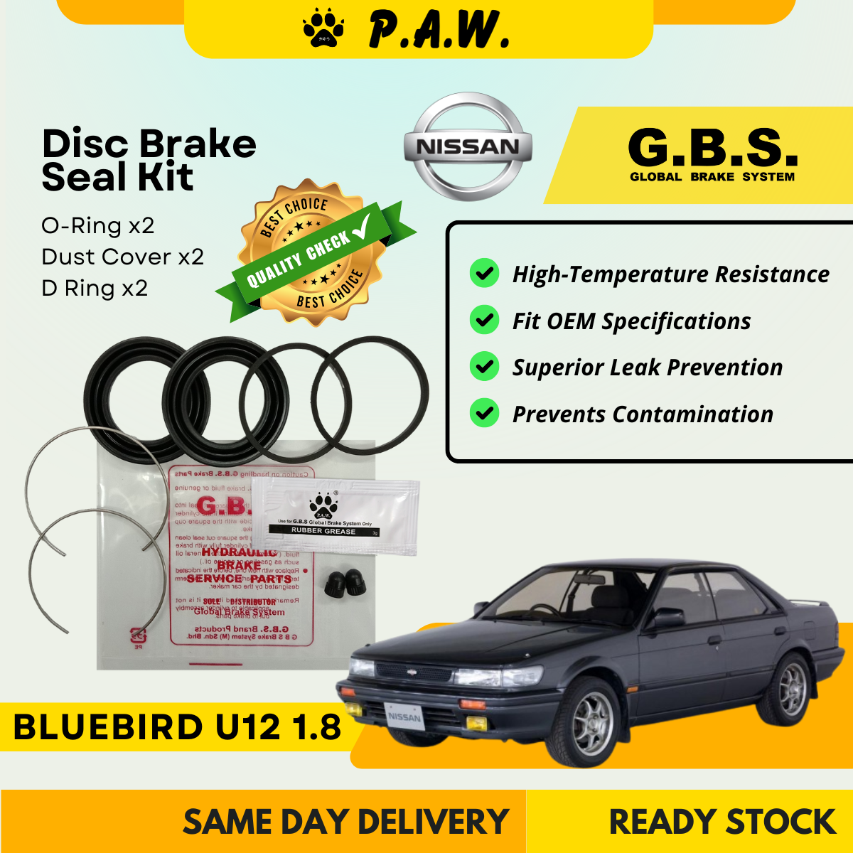 GBS Disc Brake Seal Kit For NISSAN U12 1.8 (Front) (Half Set)