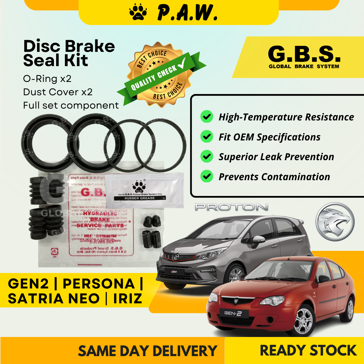 GBS Disc Brake Seal Kit For PROTON GEN2,PERSONA,SATRIA,NEO (Front) (Full Set)