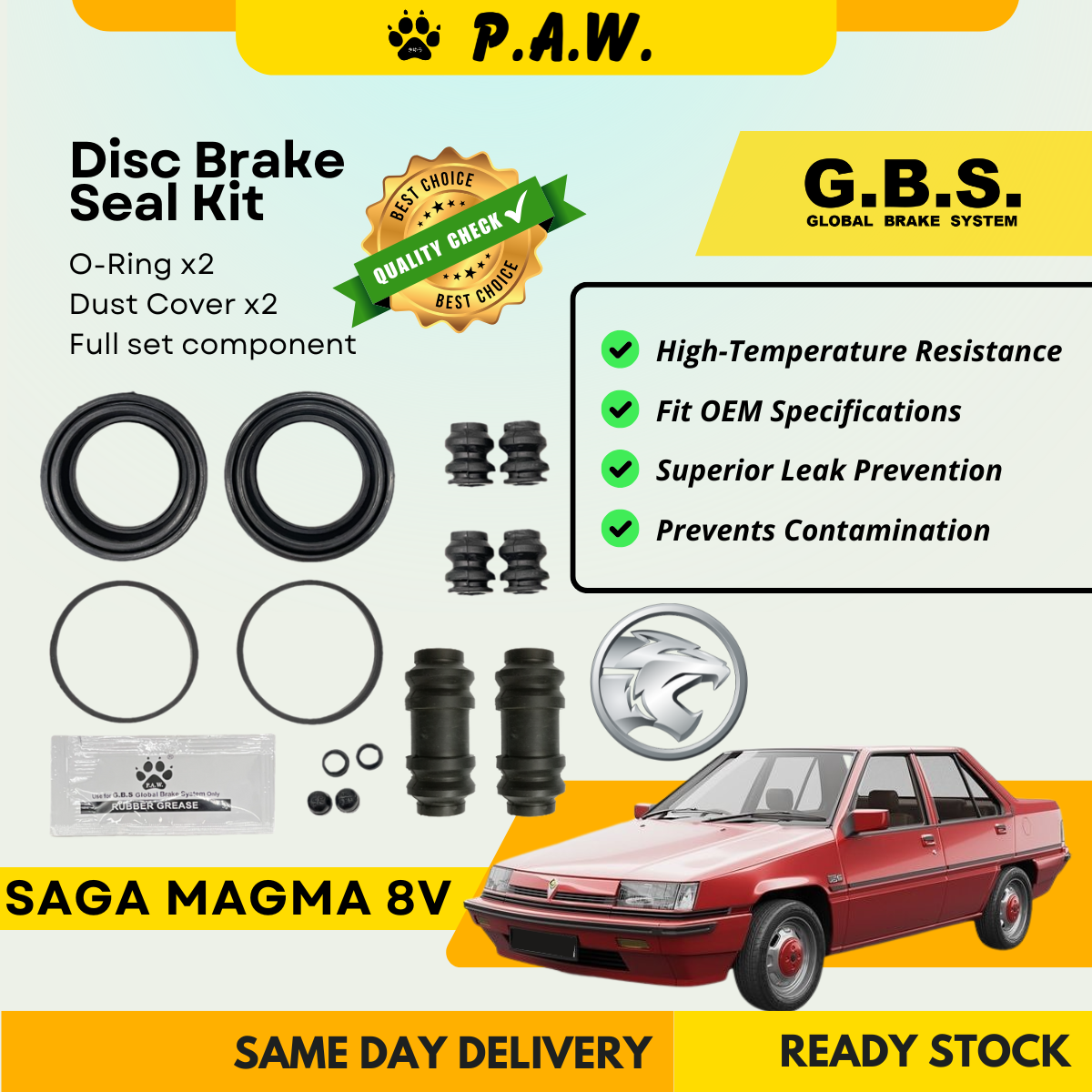 GBS Disc Brake Seal Kit For PROTON SAGA MAGMA 8V (Front) (Full Set)