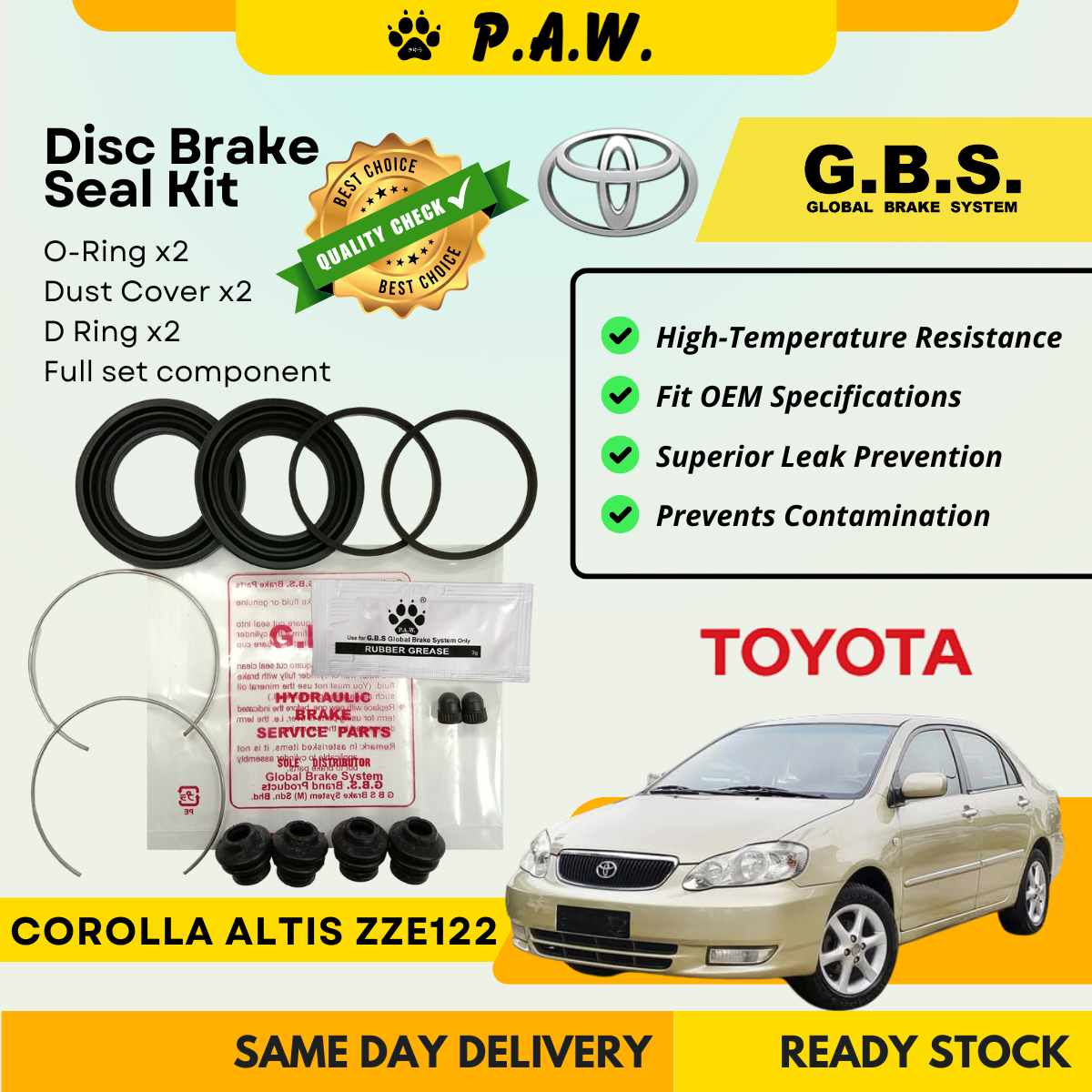 GBS Disc Brake Seal Kit For TOYOTA ALTIS ZZE122 1ZZ-FE 1.8 (Front) (Full Set)
