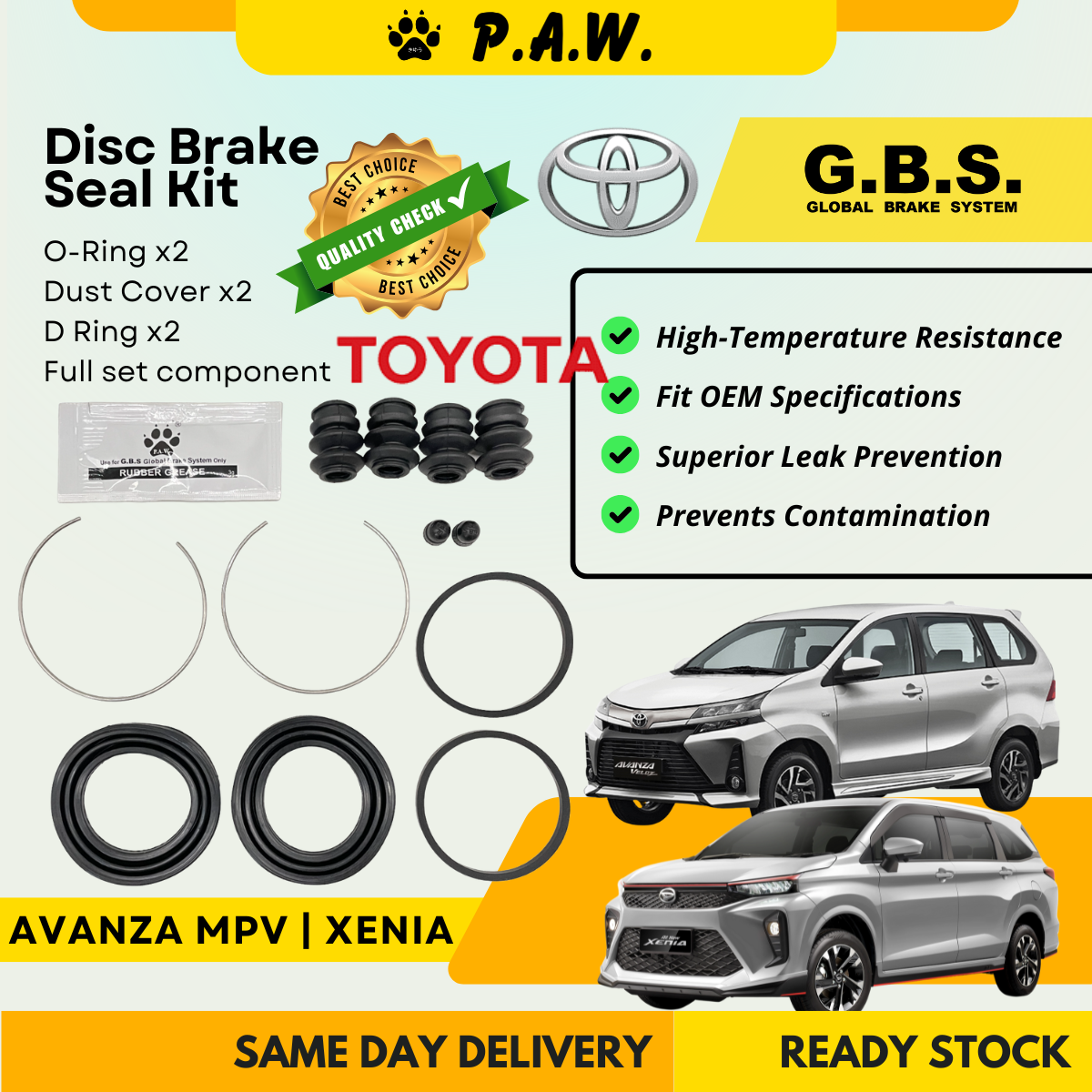 GBS Disc Brake Seal Kit For TOYOTA AVANZA MPV XENIA (Front) (Full Set)
