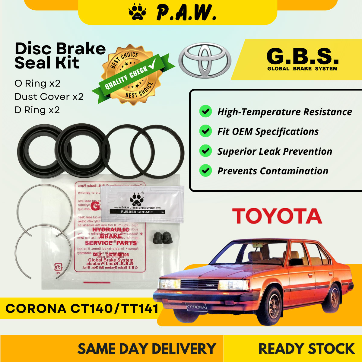 GBS Disc Brake Seal Kit For TOYOTA CT140,CORONA TT141 (Front) (Half Set)