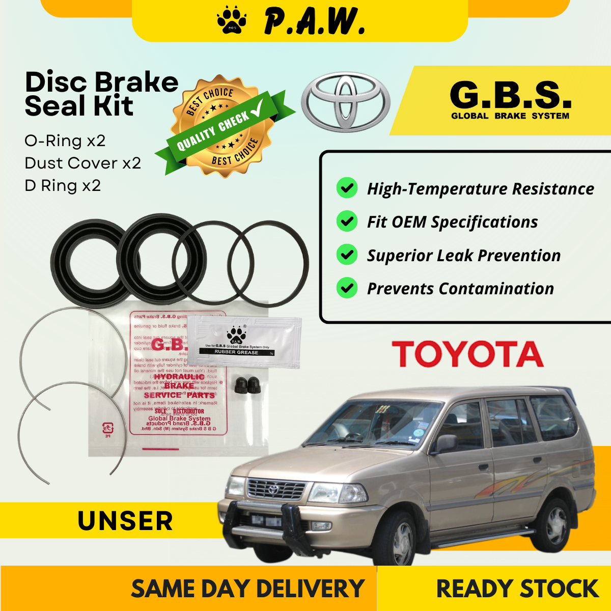 GBS Disc Brake Seal Kit For TOYOTA UNSER (Front) (Half Set)