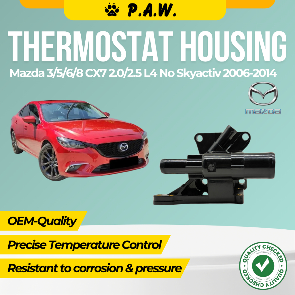 MAZDA 3/5/6/8 CX7 2.0 2.5 L4 NO SKYACTIV 06-14′ MONDEO ENGINE COOLANT WATER OUTLET THERMOSTAT ASSY (PVC HOUSING + SENSOR