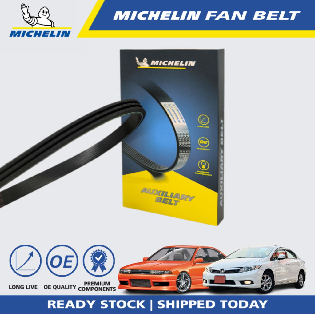 | Description | MICHELIN Nissan Cefiro 2.0, N16, Honda Civic CVCC (Import) Fan Belt (3PK855) | MICHELIN Toyota Land Cruiser Prado HDJ101, Citroen ZX19 Fan Belt (4PK1245) | MICHELIN Toyota Sera 1.5, Suzuki Vitara V6 Fan Belt (4PK1080) | MICHELIN Mazda Familia 323 GLX, Suzuki Vitara V6, Ford Laser, Mazda Lantis 1.8 Fan Belt (4PK1000) | MICHELIN Toyota Avanza F651 1.3 Fan Belt (4PK1735) | MICHELIN Proton Wira 1.5, Ford Telstar 1.8 Fan Belt (4PK600) | ||||||||||||||||||||||||