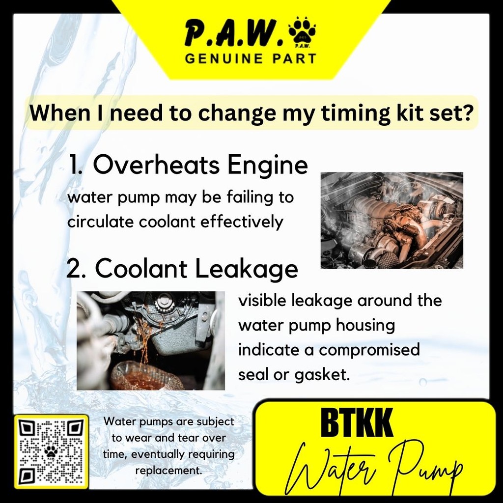 When replacement becomes necessary, it is crucial to use high-quality components such as BTKK, and follow proper installation procedures to avoid complications. Timing belt-driven water pumps, common in many vehicles, often require replacement during timing belt service intervals to prevent costly repairs and engine damage. Please go to your nearest mechanic workshop for replacement of BTKK water pump.