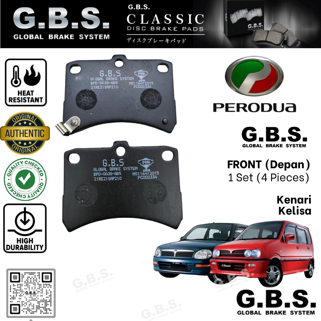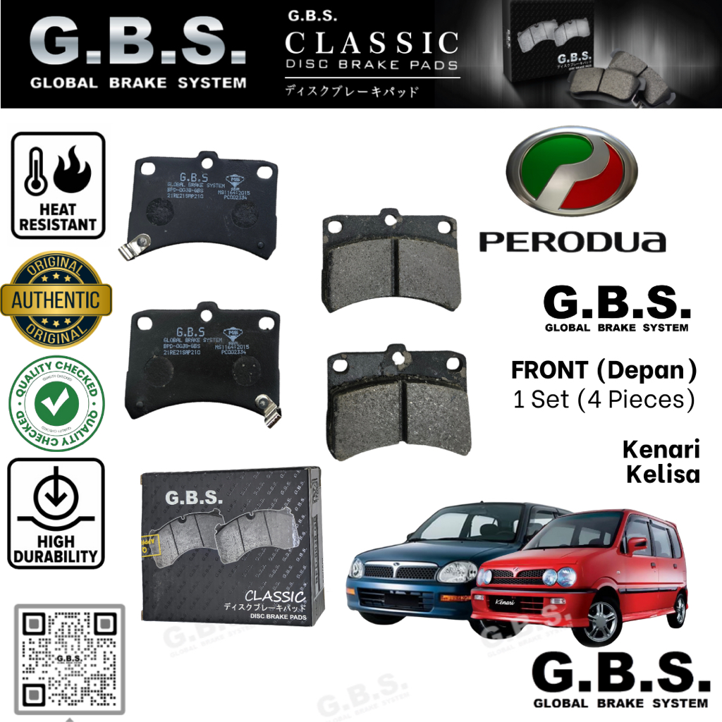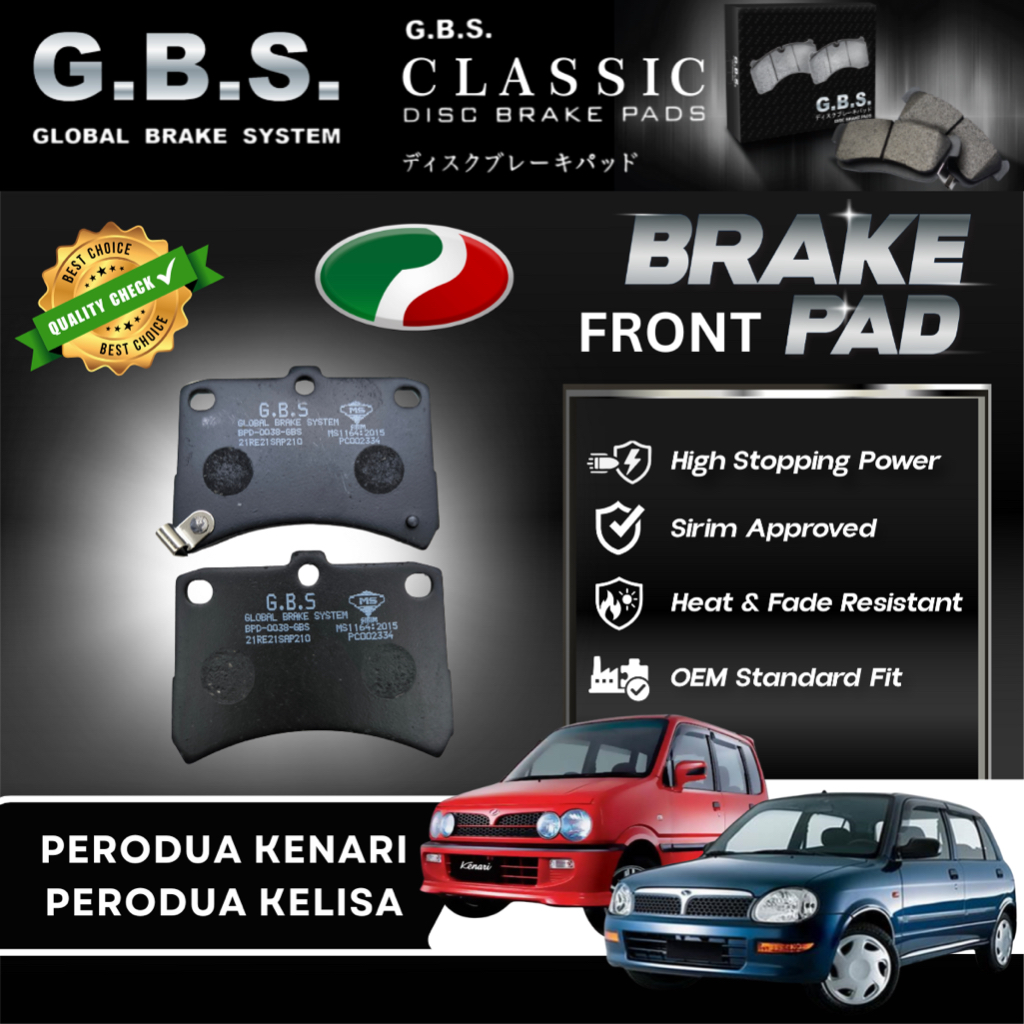 PERODUA Kelisa Kenari Front GBS Classic Brake Pad Brek Depan