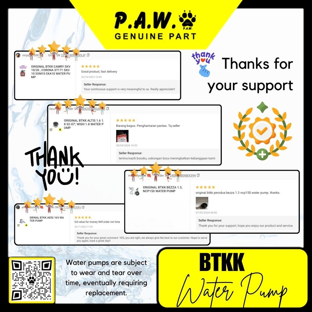 When replacement becomes necessary, it is crucial to use high-quality components such as BTKK, and follow proper installation procedures to avoid complications. Timing belt-driven water pumps, common in many vehicles, often require replacement during timing belt service intervals to prevent costly repairs and engine damage. Please go to your nearest mechanic workshop for replacement of BTKK water pump.